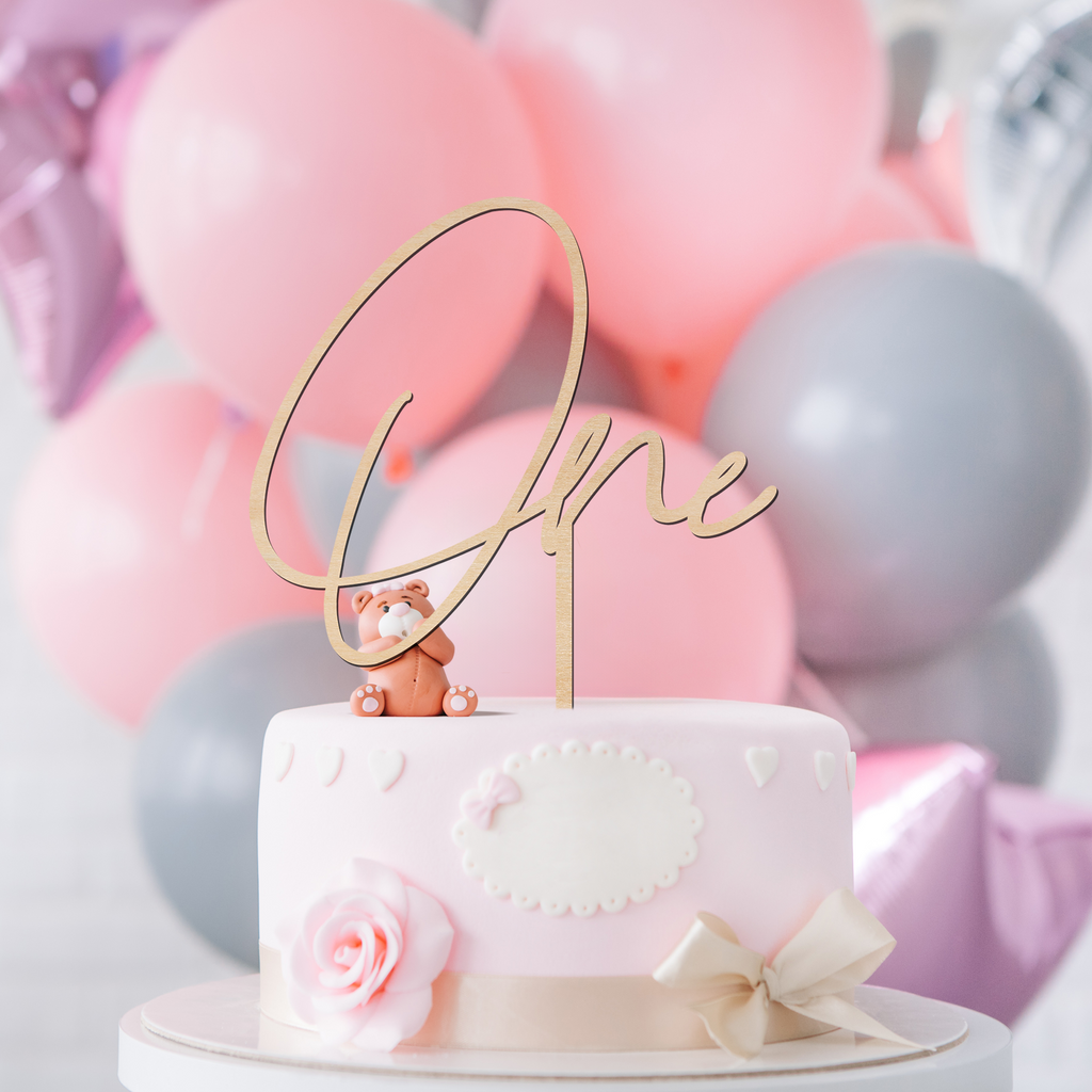 One Wooden Cake Topper for 1st Birthday Celebrations Design 01